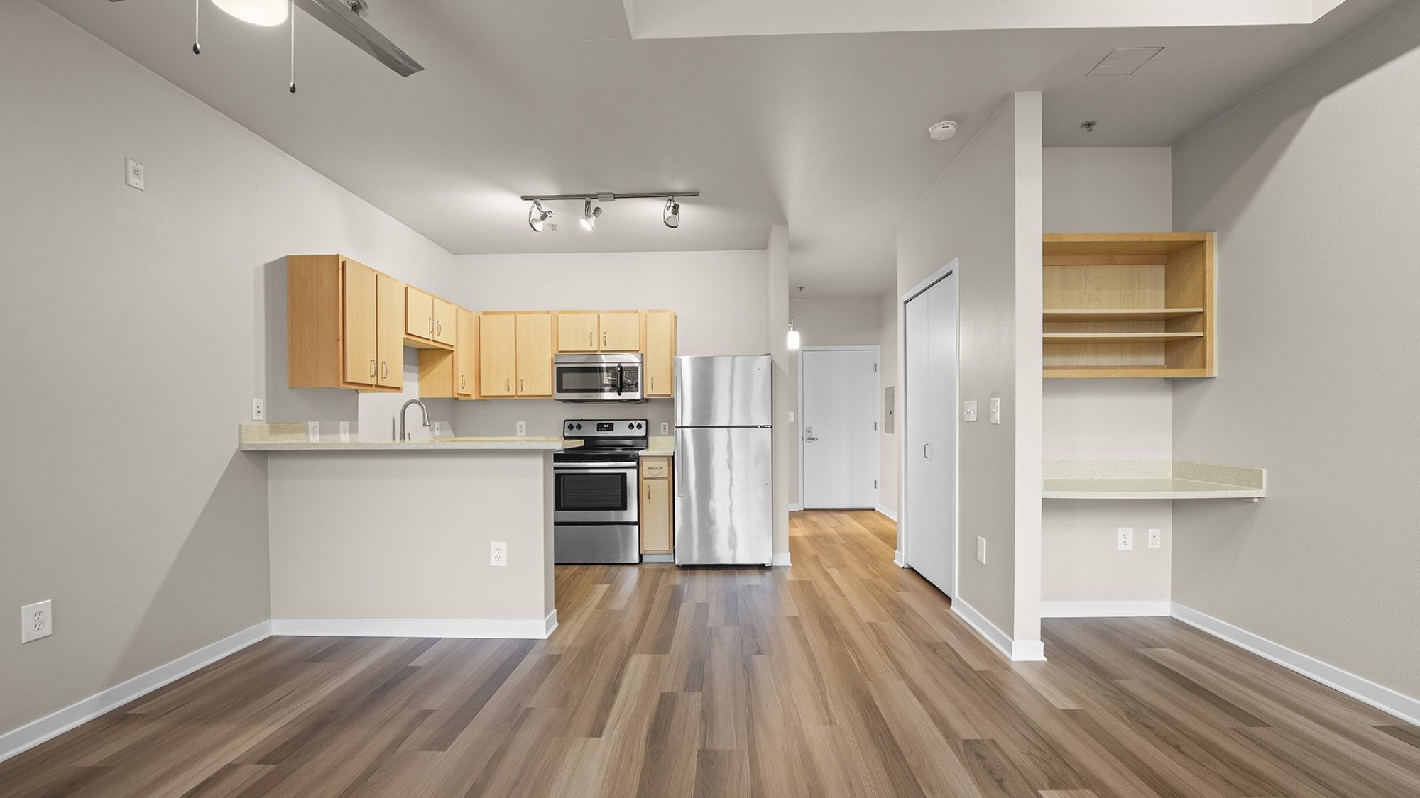 Kearney Plaza Apartments; nestled in the heart of Portland's iconic Pearl district. The spacious studio, 1, and 2 bedroom apartments boast captivating views, quartz countertops, and additional storage. In a prime location, residents are steps away from fine galleries, music venues, restaurants, and the renowned Brewery Blocks. Comfort and convenience is elevated with upscale amenities and an on-site espresso bar.